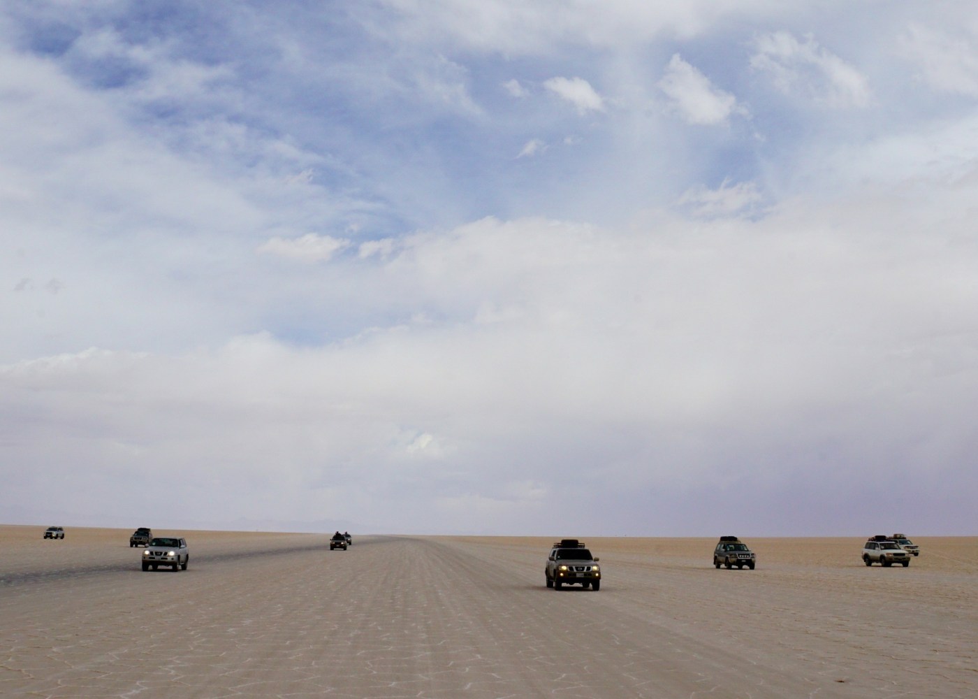 所以才出現如此壯觀的10輛車車隊在鹽田奔馳