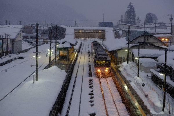 徒步可以抵達的落合バス停 在冬天飄雪時分果然夢幻的美麗